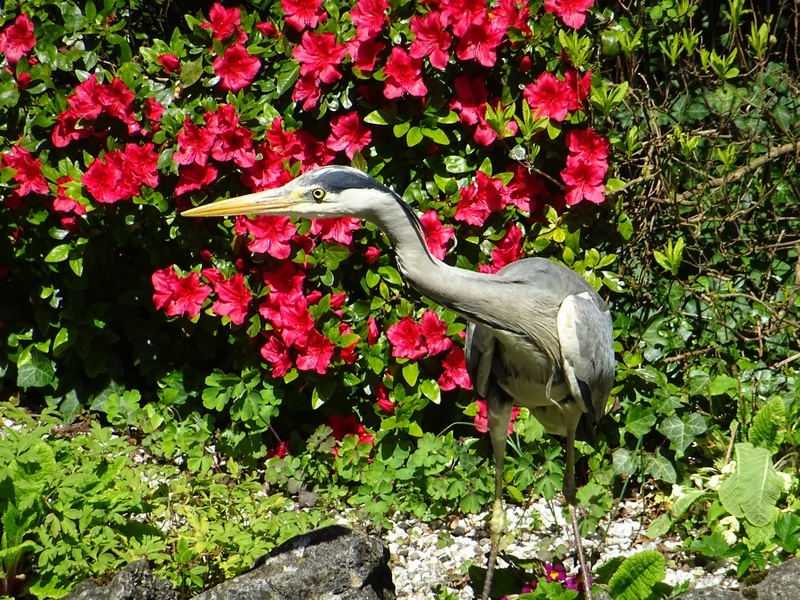 présence du héron cendré dans le jardin est due à l'existence du plan